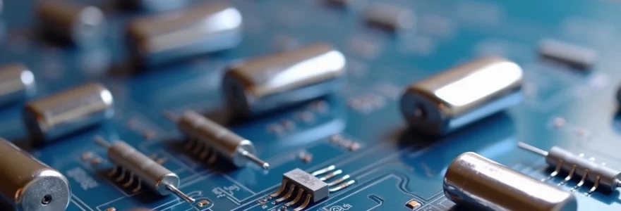 Les condensateurs électrolytiques à l’aluminium dominent les applications nécessitant de fortes capacités, typiquement de 1µF à plusieurs milliers de microfarads. Leur construction utilise une fine couche d’oxyde d’aluminium comme diélectrique, permettant d’atteindre des densités énergétiques élevées dans un volume réduit. Ces composants excellent dans le filtrage des alimentations à découpage et les applications de découplage basse fréquence.